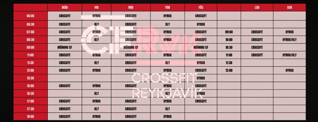 Korthafar í áskrift eða með staðgreidd almenn kort hjá CrossFit Reykjavík hafa aðgang að öllum tímum í töflu (CrossFit, Hyrox og Oly).